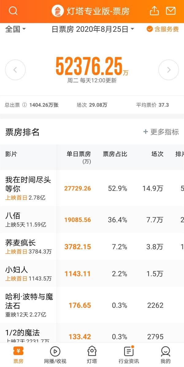 数据来源:灯塔专业版2019年的七夕节票房为5.69亿,2018年的七夕节票房仅为4.07亿。