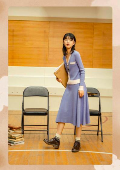 当你对着满衣柜的衣服发愁不知道穿什么的时候,时髦的半身裙套装来解救你。温柔的雾霾蓝加上白边点缀,满满的复古学院风还特别减龄!
