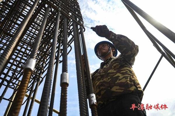 走进风博物馆项目施工现场,记者看到,在B区、C区展馆,工人们正忙着搭设架子,铺钢筋网,为楼面层的浇筑工作做准备。风博物馆项目经理张建军介绍,10月后,平潭的风力将逐渐增强,为了抢抓工期,工人们每天上午5点就开始上班。