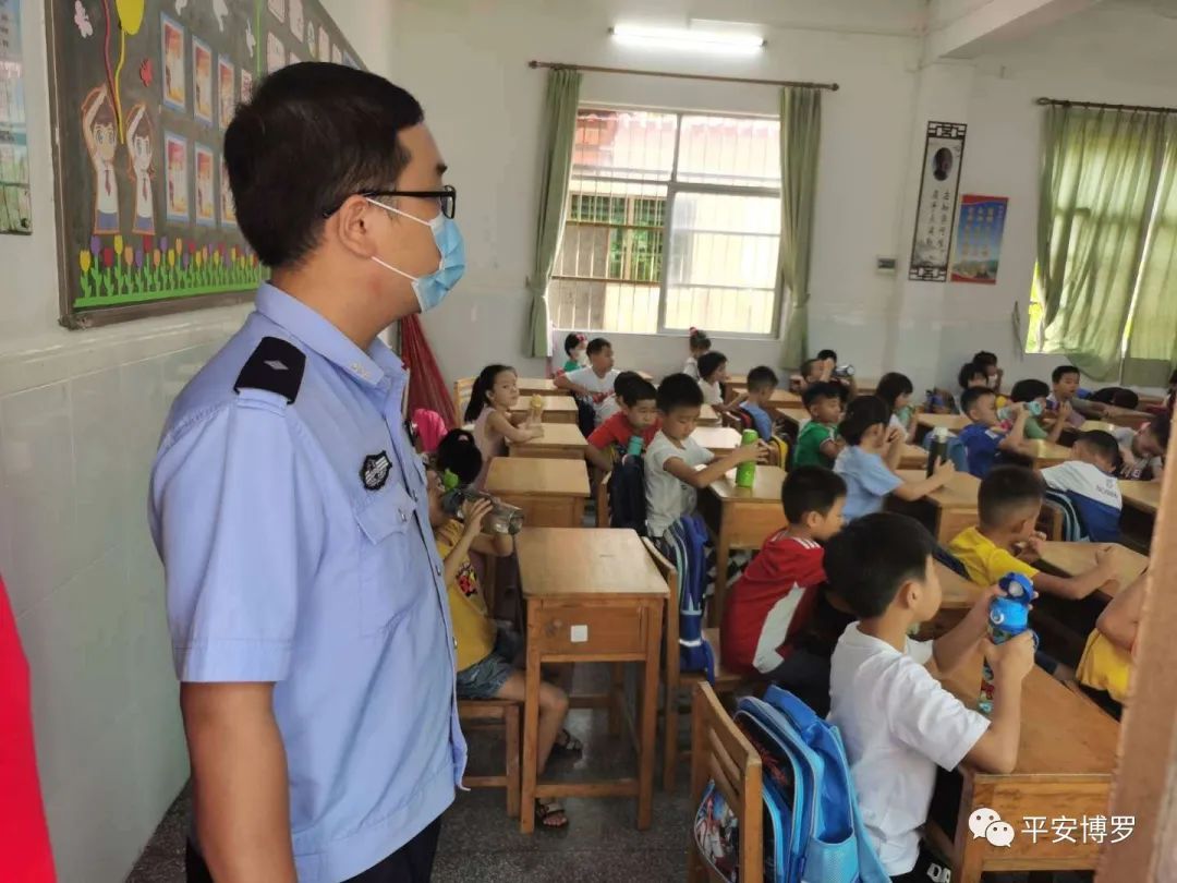 田头村驻村民警郑惠成被惠州市华阳职业学校聘为“法制副校长”,开学周,郑惠成带队到学校疏导交通,维护校园周边秩序,检查消防安全设施,摸排宿舍楼的安全隐患,并与华阳职业学校校长商议相关安保方案,议定落实周五放学、周日返校的人流高峰期设岗护学等勤务安排,旨在打造一个更安全舒适的校园环境。上南村驻村辅警方雄斌到园洲中心小学,向家长和学生们宣讲法律知识,引导学生要遵纪守法,远离毒品。