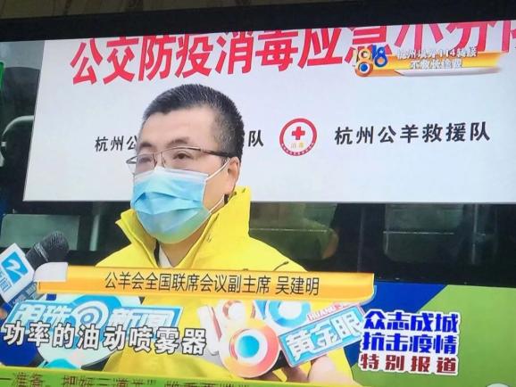 面对突如其来的疫情,吴建明勇于担当、主动作为,大年初三便召集公羊队队员们多次前往萧山区疾控中心、滨江区民政局等单位捐赠疫情防护急需用品。据统计,公羊会公益基金会发动广大会员联合社会各界共为湖北各地市及疫情防治需要捐赠了价值1千7百余万元物资。同时,在他的带领下,浙江公羊会率先在杭州打响了消杀病毒第一枪,全国各地公羊会迅速组织起来,统一部署、统一培训,在确保自身安全防护的基础上,配合地方政府开展持续的精准消杀志愿服务。