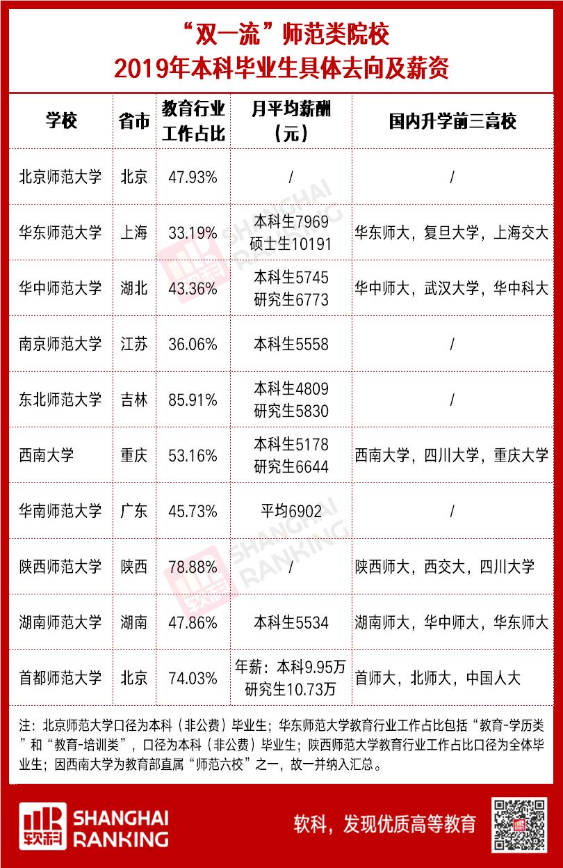 越来越多的人羡慕老师这一职业,尤其受疫情影响,近半年来全国大多数行业停工停产,这时更多人向往教师的“铁饭碗”。那么,师范院校毕业生目前就业形势如何?我们来看看进入“双一流”的师范类院校毕业生情况(因西南大学为“师范六校”之一,故一并纳入汇总):