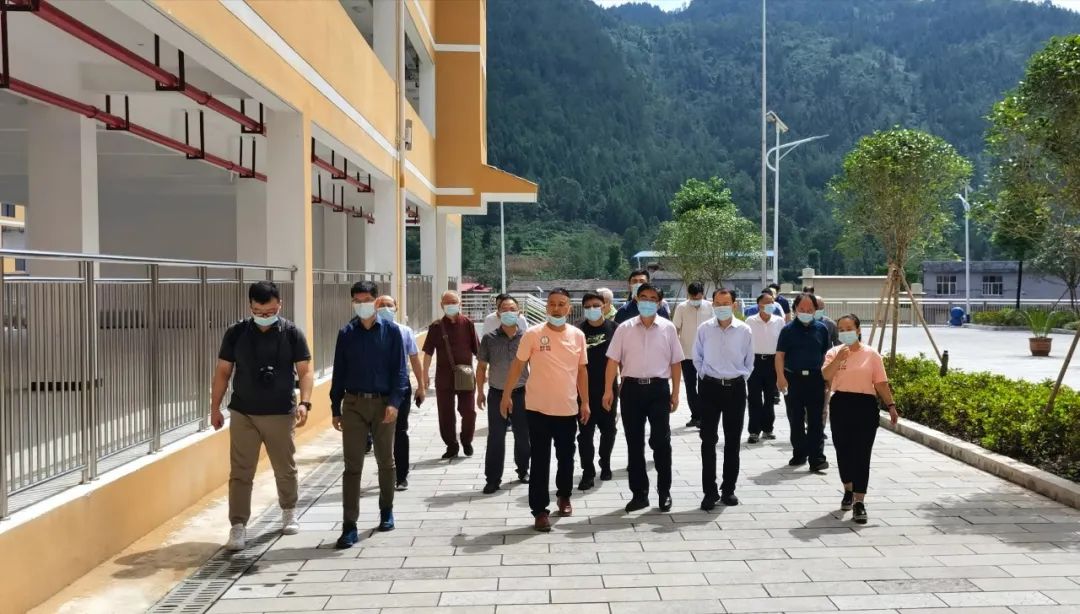 9月4日,考察组一行抵达恩施州宣恩县松坪实验小学,开展现场教学指导挥毫,捐赠助学慰问金、艺术品和艺术图书,为这里的孩子带来一场文化春雨。恩施州常委、副州长吴槐庆等一行陪同参观校园,学校校长冯安禄介绍校园的建设情况。