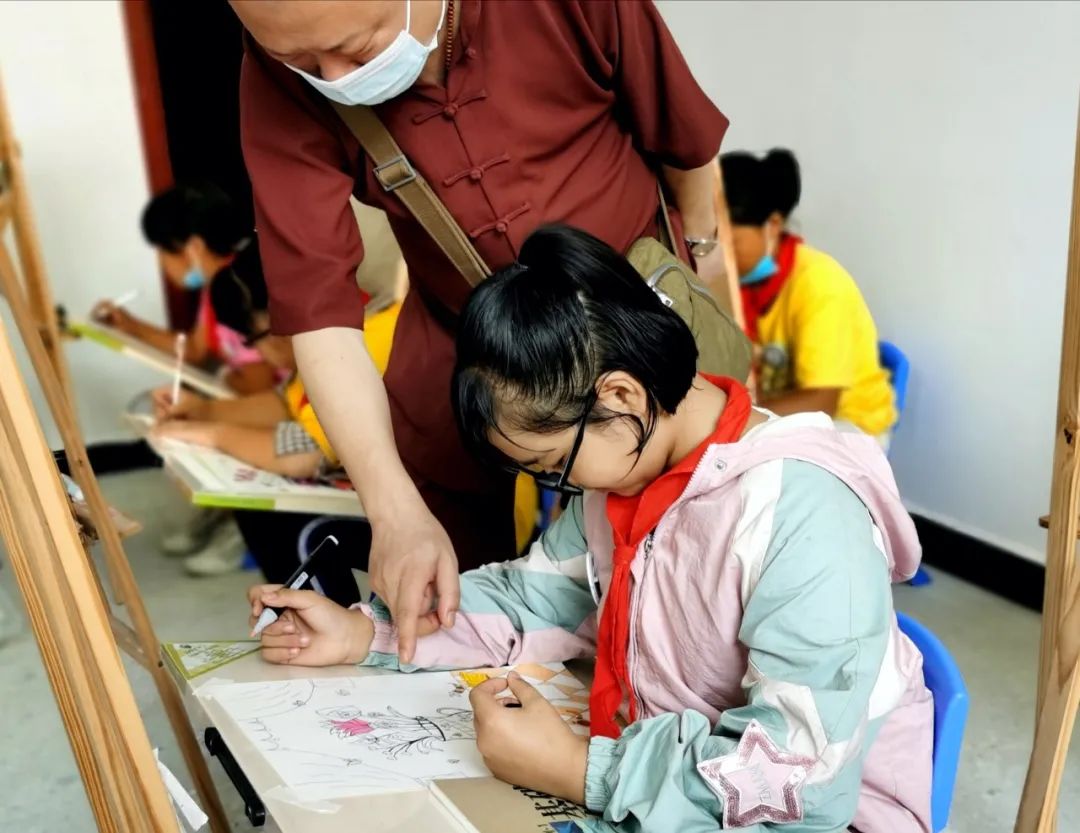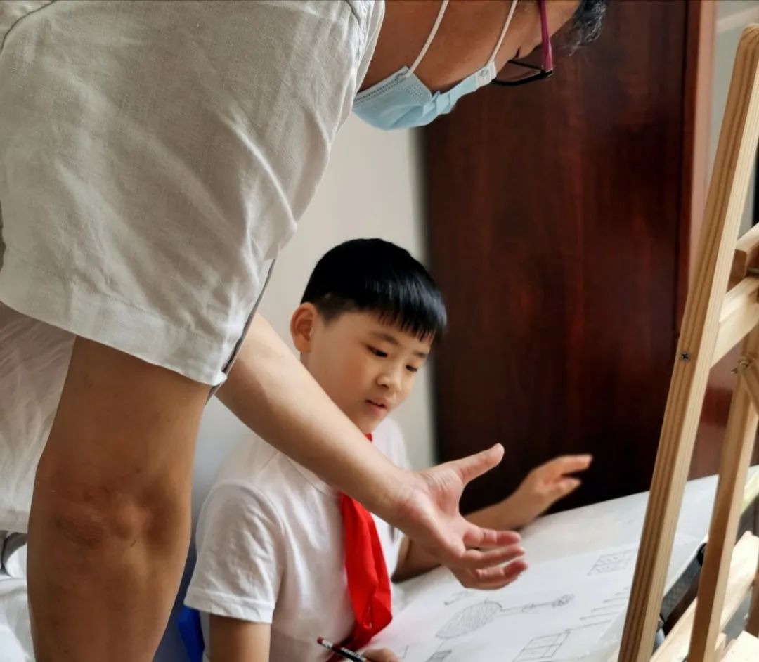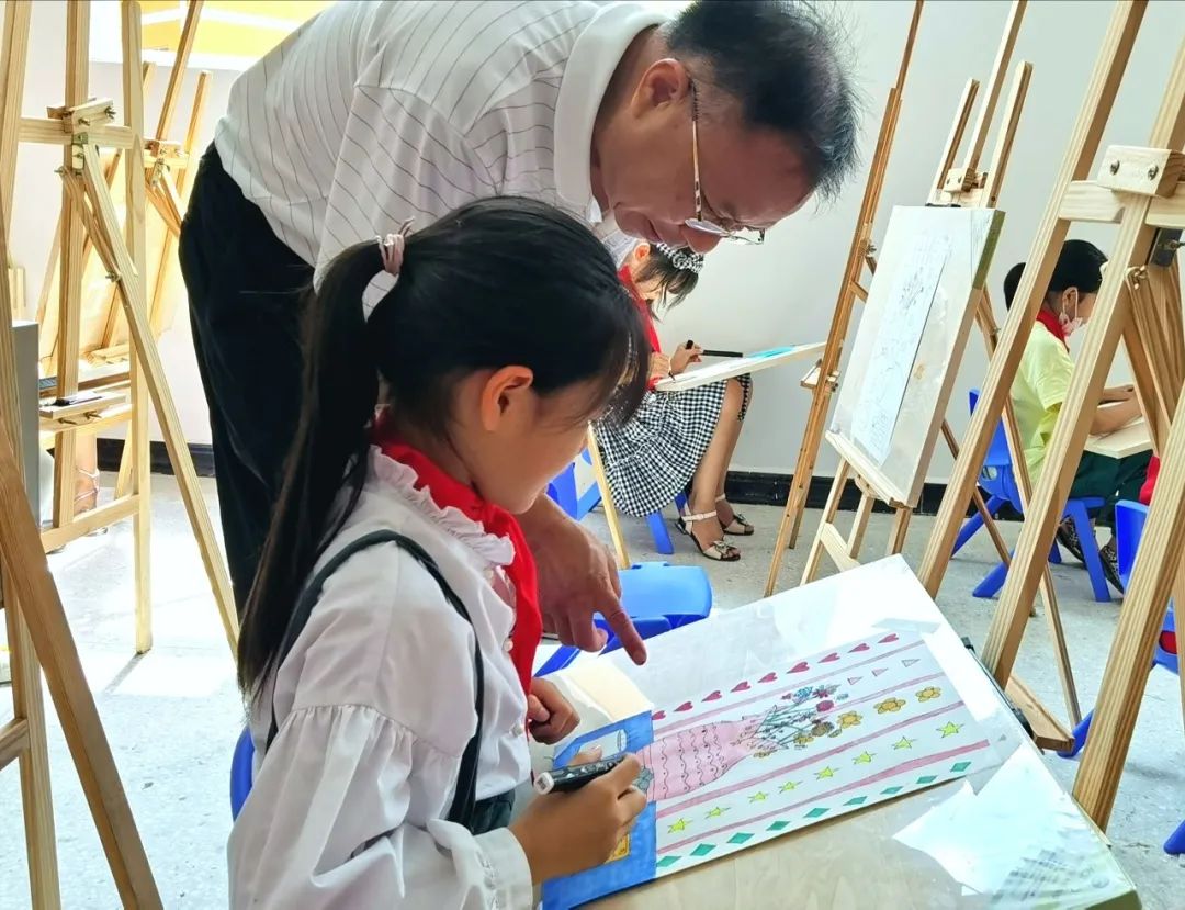 西泠印社专家观察学生的绘画后,通过让学生想象、描述,从线条、轮廓、色彩等方面指导学生。