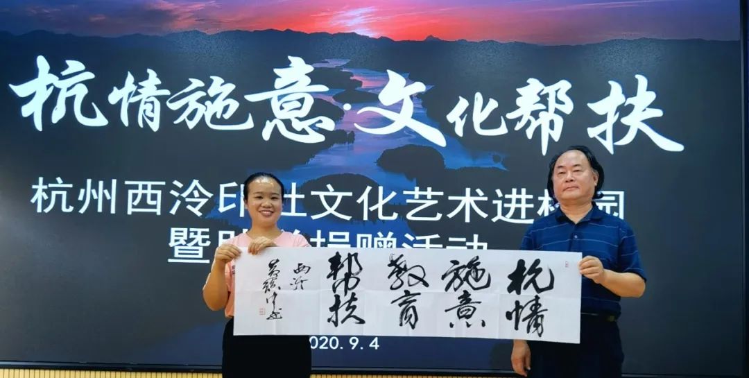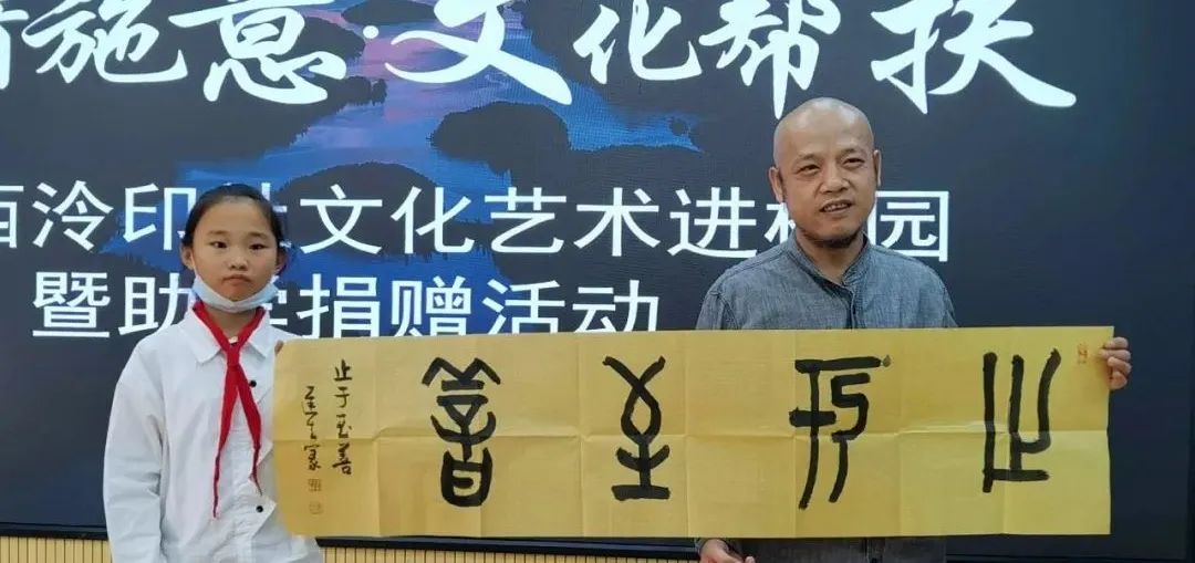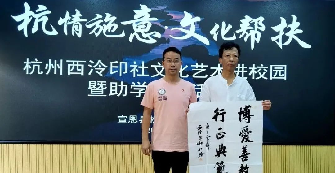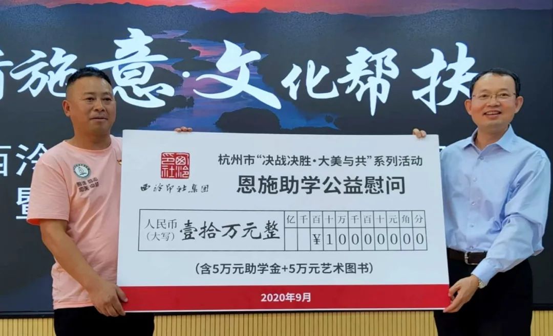 西泠印社集团向宣恩县松坪实验小学捐赠“助学公益慰问金”(含艺术图书)10万元及多幅艺术作品。