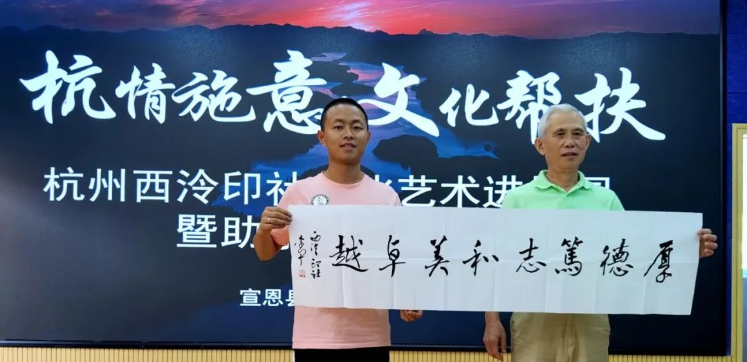 9月4日,由中共杭州市委宣传部、组织部主办,杭州市对口支援和区域合作局、西泠印社集团承办组织的“决战决胜·大美与共——西泠印社社员‘走进美好新生活’主题采风助学公益行”活动,在西泠印社集团党委副书记、副董事长、总经理王紫升的带领下,先后在恩施州宣恩松坪实验小学、彭家寨、咸丰唐崖土司城遗址、利川大水井古建筑群、恩施州博物馆开展实地采风。他们对恩施独特的历史地理、人文环境兴趣浓厚,并在利川、恩施两地与当地书画家开展笔会交流活动,通过艺术家们手中的画笔助力提升恩施相关地理标识、产品品牌的文化宣传效力。采风结束后,西泠印社的艺术家们纷纷表示,今后将继续有针对性的结对帮扶恩施,为东西部扶贫协作做出自己的贡献。走进恩施州开展系列文化帮扶活动,为恩施州的文化艺术教育发展添砖加瓦。