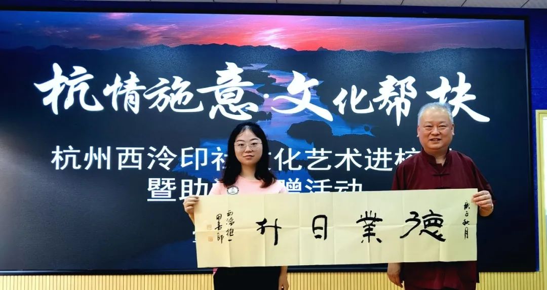 西泠印社理事、浙江省政府参事江吟现场书写“杭州恩施一家亲、东西协作共育人”