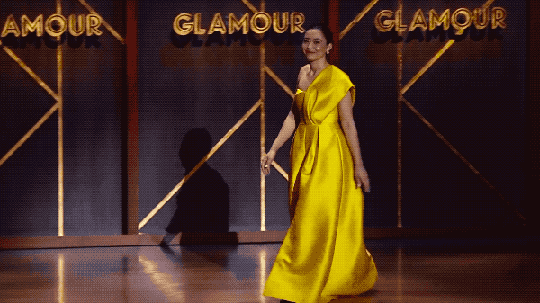 2019年,由美国《Glamour》杂志举办的年度女性盛典上,她穿着一袭亮黄色礼裙,从黑暗中大步走向舞台中央,双手比着“耶”。代替冠冕堂皇的领奖词,她背诵了一首上台前临时写的小诗,Don’t Give a Damn,直译成中文是“不屑一顾”,或者更直接一点,“去你的吧”。