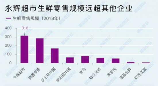 永辉的生鲜零售规模远超其他超市,不论是大润发(高鑫零售)还是沃尔玛,在生鲜零售领域都要落后于永辉。生鲜成为了永辉的最大记忆点。