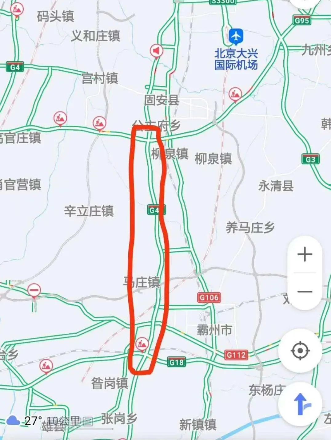 ● 由北京南行车辆可转首都环线高速绕行京港澳高速或106国道向南行驶。