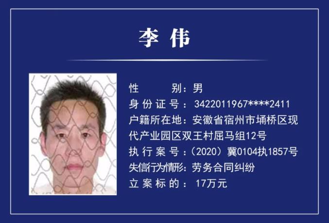 石家庄桥西法院最新发布失信被执行人名单↓↓↓