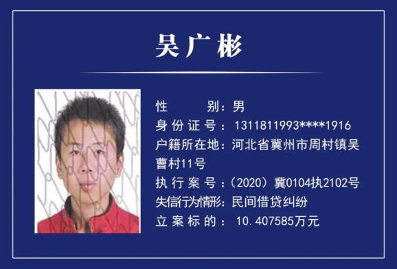 孟村法院失信被执行人曝光台第40期↓↓↓