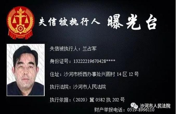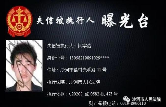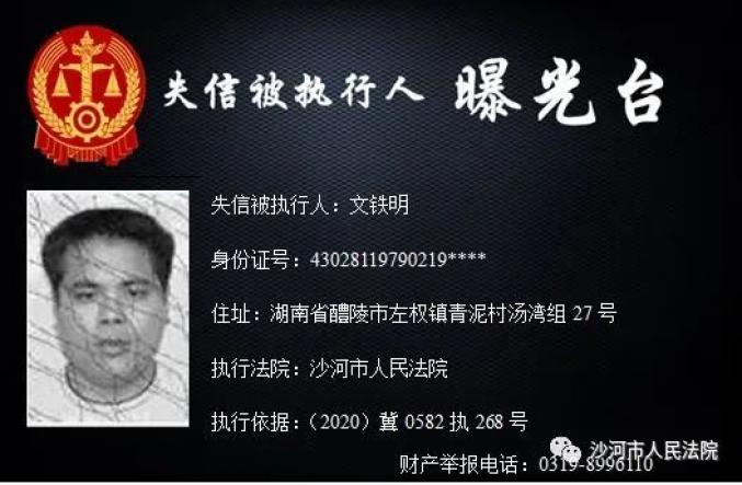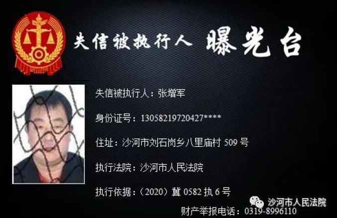 守信的社会风气,推进诚信社会建设,本院根据《中华人民共和国民事诉讼法》及相关法律规定,决定对下列失信被执行人予以曝光。同时也欢迎广大市民提供失信被执行人的财产线索。☏ 举报热线 0317-6762110
