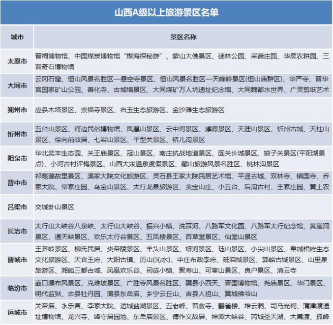 山西130家A级以上景区免首道门票