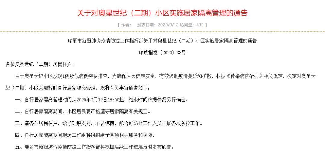 【发现疑似病例,小区封闭!】云南省瑞丽市人民政府官方网站连续发布两则通告,称当地发现1例疑似病例。