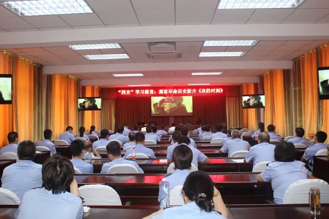 渔山戒毒所组织警察职工观看爱国主义电影《决胜时刻》。