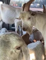打开后排车门,才发现车内早已“羊山羊海”。摩肩接踵、羊头攒动,大大小小十几只山羊在如此闷热狭小的环境中显得躁动不安。有好几只因空间狭小,已被挤到无法站立。被群踩而跪卧着的羊,看上去很痛苦。锋利的羊角也有随时冲破前方驾驶室座椅的可能。