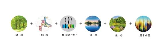 三种色彩——分别源自植被、阳光、水,寓意“生态、生活、生机”的核心理念;同时象征温榆河公园由三区共建以及三个文化带汇聚的含义;