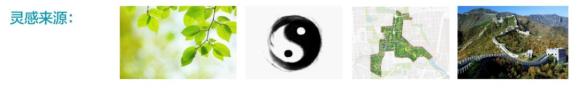 图形源自中国传统的阴阳相生图——体现“天人合一”的中国传统自然观和世界观;