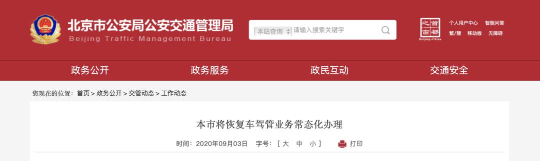 9月3日,北京市公安局公安交通管理局发布消息,北京交管部门将全面恢复车驾管业务常态化办理,之前出台的驾驶证审验换证、机动车检验等业务逾期未办不予注销等“延期办”和驾驶证期满换证“容缺办”政策将于10月31日停止执行。