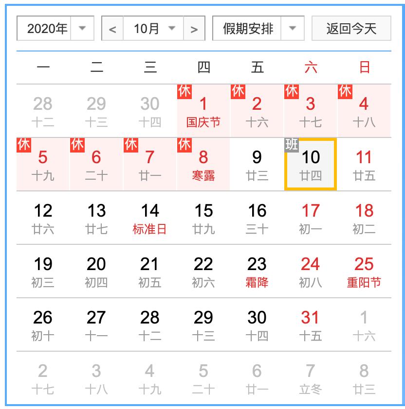 今年中秋节以及国庆十一的放假时间已经确定了,10月1日-10月8日,共八天。