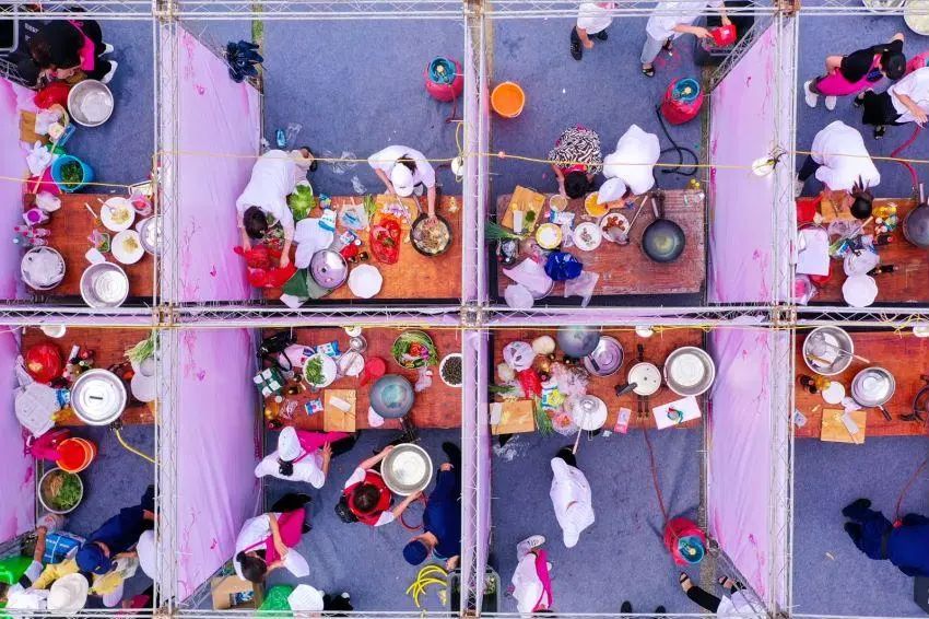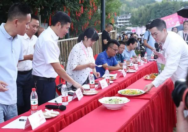 当天下午,现场还举办了“寻找乡愁记忆感受妈妈味道”泰顺县民间巾帼厨艺大赛,全县19个乡镇37位“厨娘”参加比赛。比赛中,“厨娘”们切、煎、炸、炒,奏响出欢快的锅碗瓢盆交响曲,一道道拿手菜“百花齐放”,金玉满堂、秘方红烧肉、将军鸡、什锦菜等特色菜肴让人垂涎三尺。评委从口味、色泽、造型、质感、营养卫生等角度对选手们的作品进行品尝、打分,最后评选出一二三等奖。除37个参赛美食外,现场还准备了10多个泰顺当地特色小吃,各色美食现场一次尝个够。沿溪一边欣赏廊桥风景,一边品尝特色美食,市民和游客们度过了一个难忘的廊桥之夜。