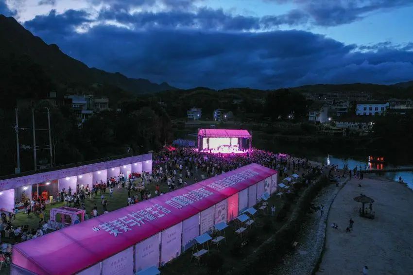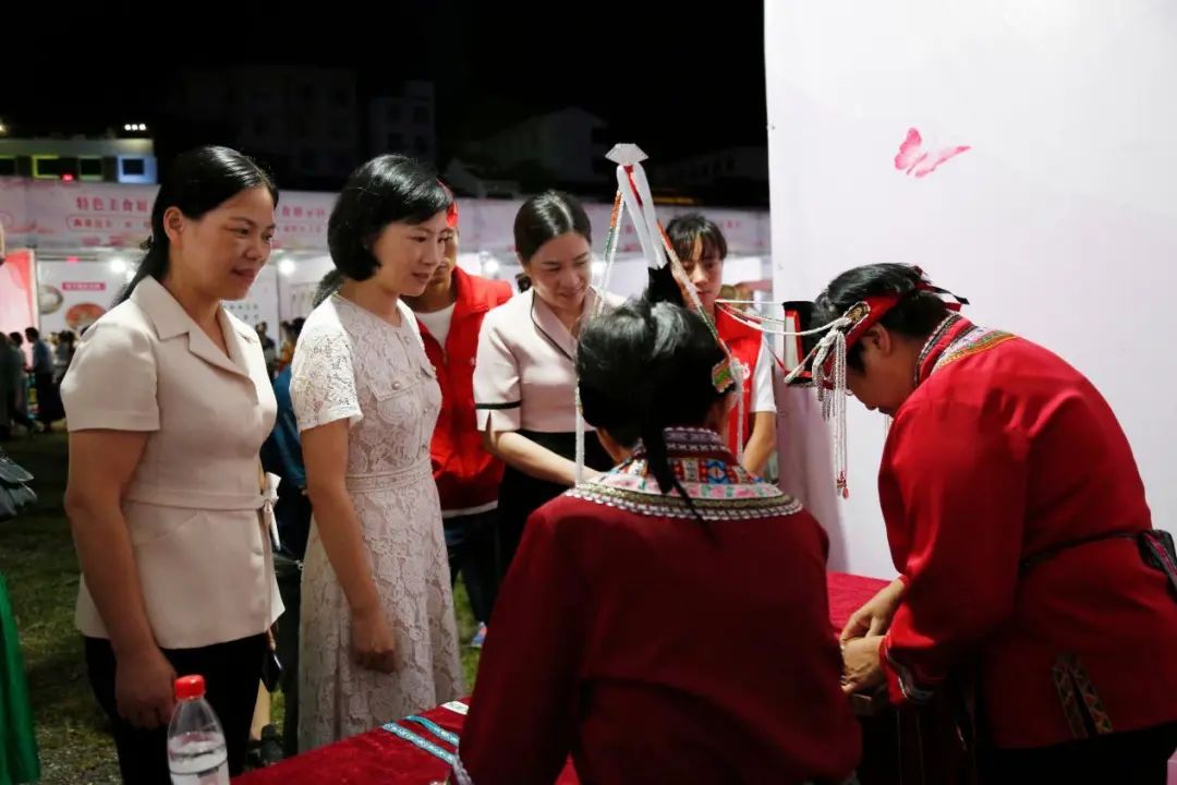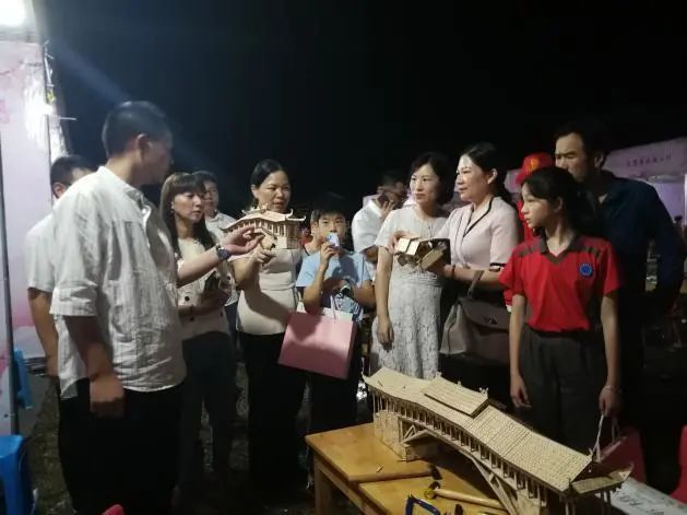 什锦菜、土鸡煲、九层糕、土豆饼、烟熏腊兔、飞云湖秘制鱼……木偶戏、米塑、陶艺、编彩带、打草鞋……9月11日晚,泰顺县举办“美美与共新生活巾帼助力创国旅”民间技艺展示交流活动,泰顺特色美食、非遗项目齐齐亮相“世界最美廊桥”北涧桥畔,上千市民、游客、家庭尽情“吃喝玩乐”,廊桥之夜令人流连忘返。温州市妇联党组成员、副主席曾玲艳,泰顺县委常委、组织部部长周碧素、泰顺县人大副主任尤联辉出席了活动。