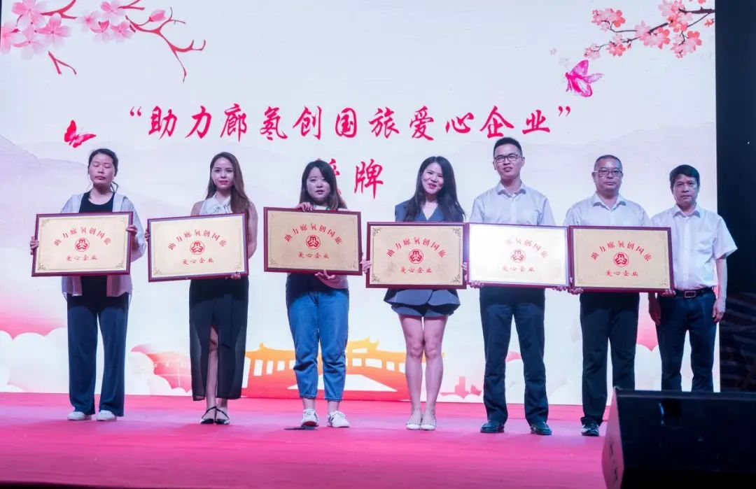 还为浙江利众竹木有限公司、浙江康鸿生物有限公司、穆丝集团(温州穆丝贸易有限公司)、浙江山友天然食品有限公司、浙江泰顺农村商业银行股份有限公司、中国建设银行泰顺分行等6家“助力廊氡创国旅爱心企业”授牌,为曾秋、夏晨曦、梦霞等3位“助力廊氡创国旅巾帼主播”授牌。