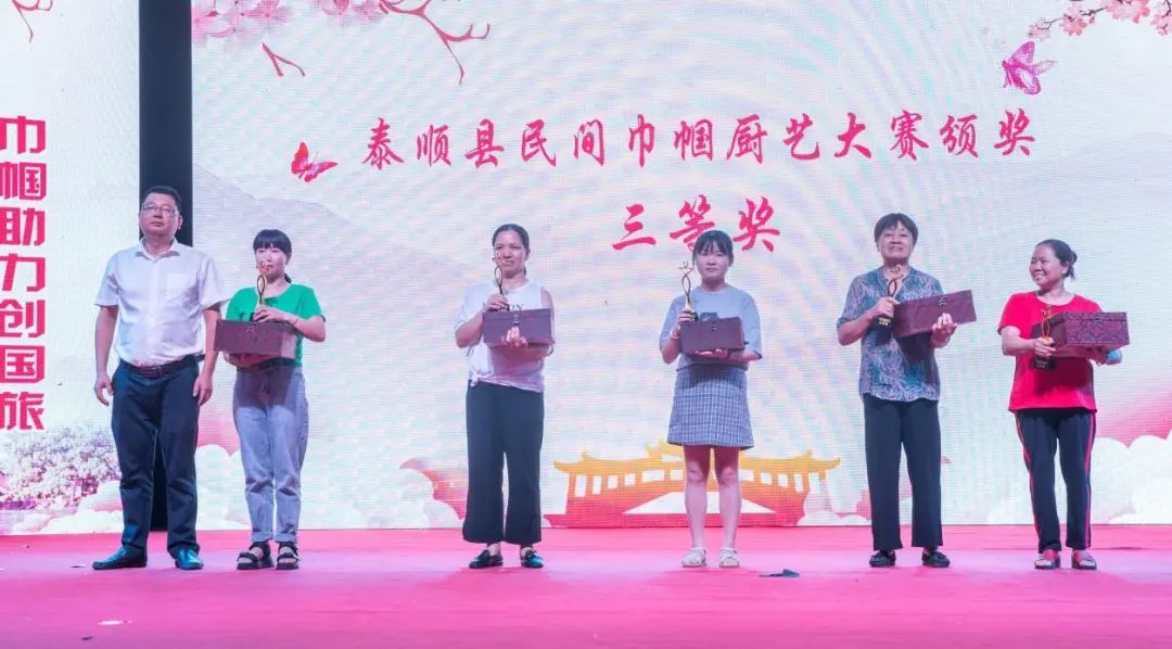 现场还为泰顺县民间巾帼厨艺大赛获奖人员颁奖,来自竹里畲族乡的钟爱翠脱颖而出,斩获了大赛一等奖,泗溪镇汪王女、南浦溪镇夏包娥、三魁镇雷秋林分别获得了二等奖,南浦溪镇陶丽香、泗溪镇林海青、雪溪乡王夏红、西旸镇胡玉、仕阳镇罗珠兰分别获得了三等奖。