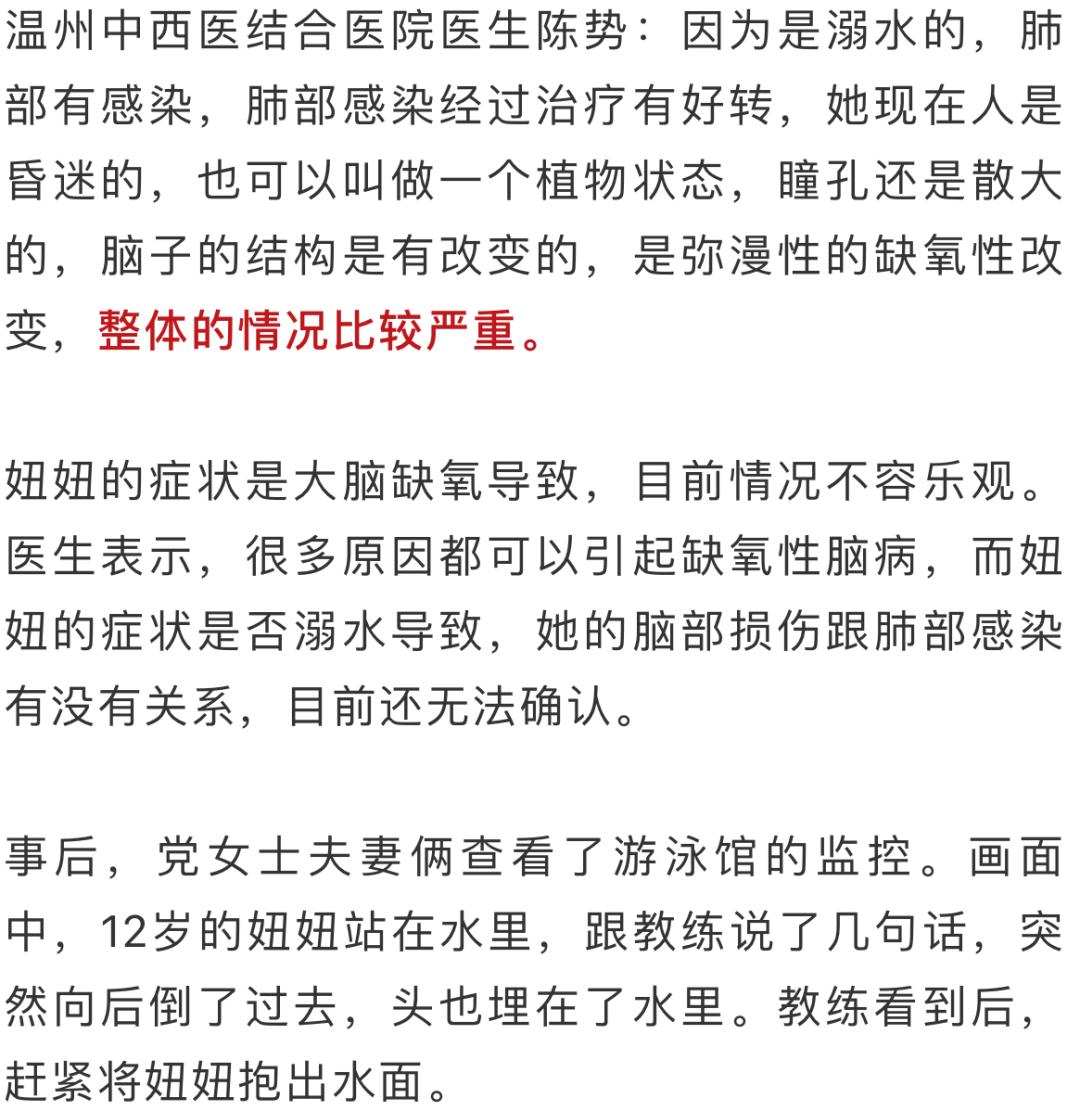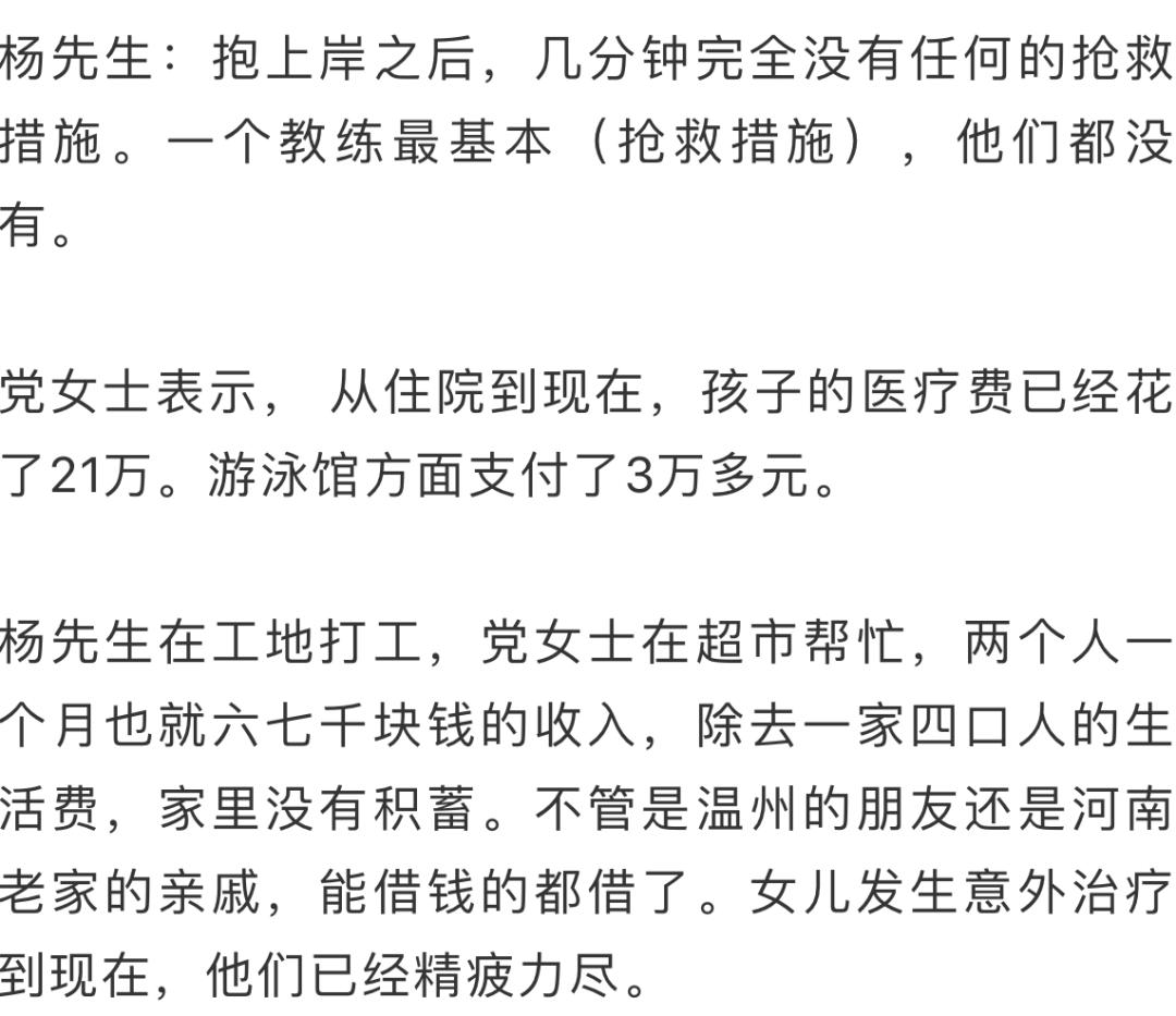 游泳教练:她一开始有呼吸有意识,那时候她就是腿部很僵硬,跟她说话都能回我们话,我们把她嘴巴打开了,看看有没有异物,我们都检查过了,一抱上来之后,马上打了120。