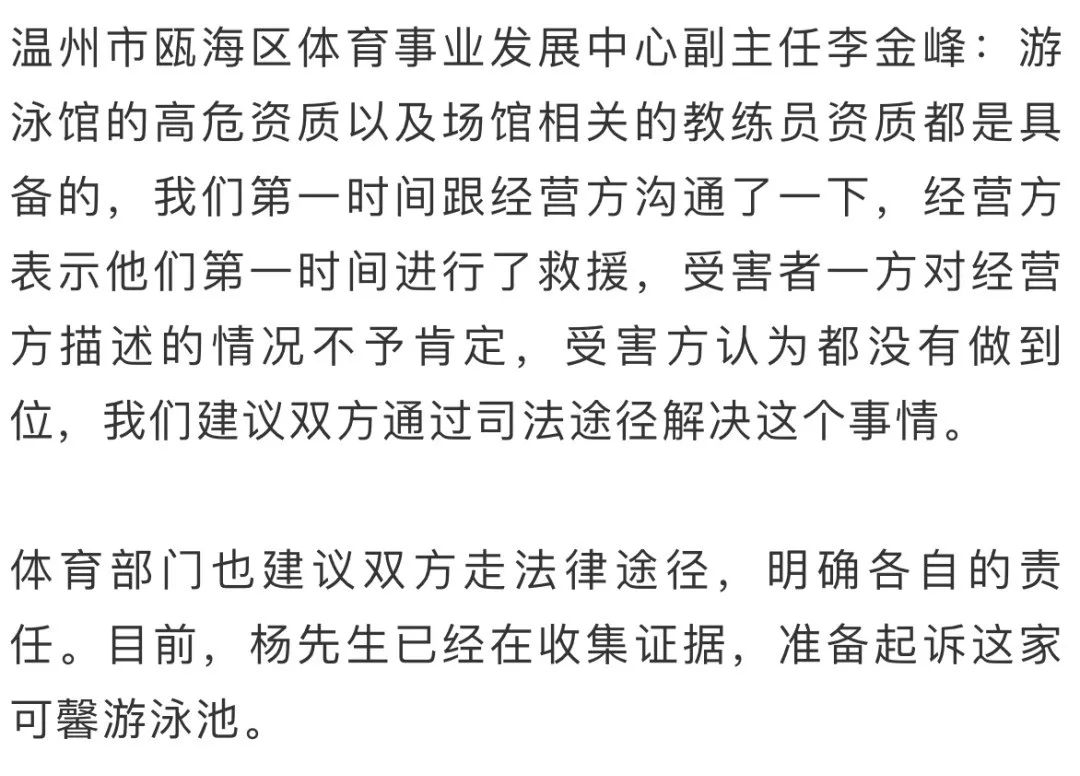 网友热评:@黄安迪:毕竟是在游泳馆里出的事情,多少肯定有责任的,,这个游泳培训应该有意外保险的吧?