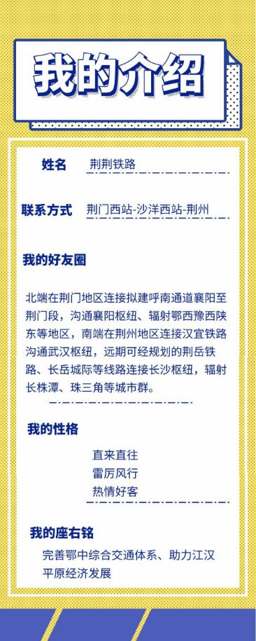 荆荆铁路又名荆荆客专,是湖北今年疫情后重振的重大项目之一,也是今年湖北新开工的第一个高铁项目。是荆门至荆州的一条高速铁路,设站三座,分别为荆门西站、沙洋西站、荆州站,全长77.6公里,设计时速350公里,于2020年9月16日开工建设。荆荆铁路建成通车后,荆州、荆门两地来往仅需20分钟。那请收下“荆荆”的介绍名片
