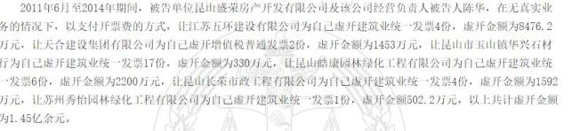 昆山农商行的第4大股东——昆山金侨房地产开发有限公司(下称“昆山金侨”)于2018年也收到一张429万元的罚单。同时,昆山金侨的最大股东陈华,在2018年被判犯下“虚开发票罪”,金额达到3亿元,情节特别严重,被判处有期徒刑二年,缓刑三年,并处罚金五十万元。