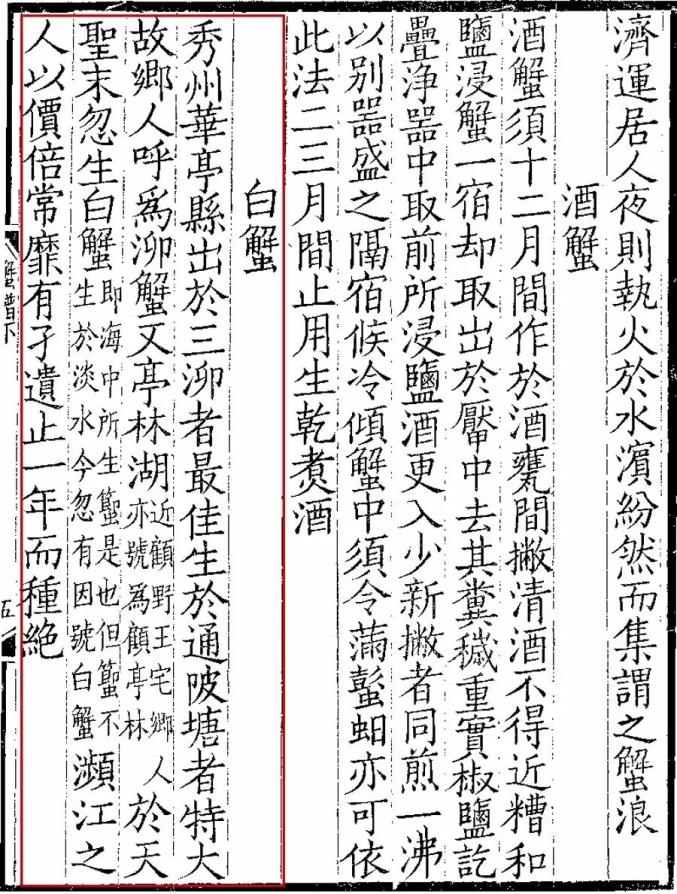 北宋傅肱《蟹谱》和南宋高似孙《蟹略》,前后相继,是历史上颇有影响的两部关于蟹的专著。而这两部著作中有大量关于江南地区产蟹、捕蟹、食蟹的内容。更为有趣的是,现今上海地区也被明确记载其中。