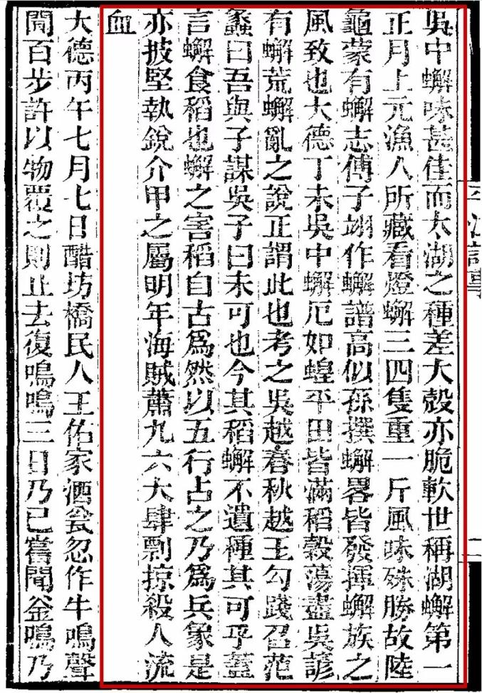 如今对食蟹最为痴迷的无疑是苏浙沪一带。而历史上以长江三角洲为核心的江南地区也是河蟹最著名的产地。复旦大学中国历史地理研究所教授王建革在《水乡生态与江南水乡》中指出,宋明时期的苏松一带,“由于河水感潮,在海水与湖水交汇的地方,蟹类非常之多”。