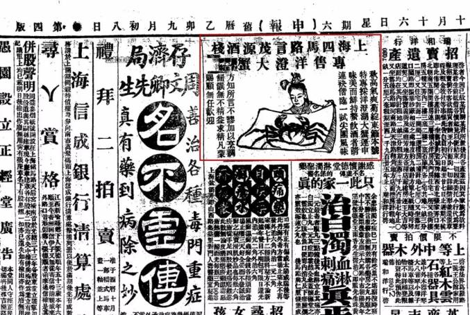 《申报》创刊于1872年,是近代上海发行时间最久、具有广泛社会影响的报纸。其内容包罗万象,当然也不会缺少关于蟹的话题。1877年10月16日的这篇“食蟹爲患”的小文,寥寥几十字,透露出的信息量却不少。