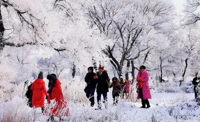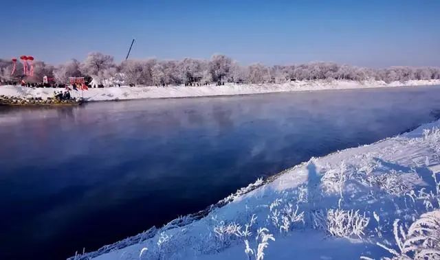 每当吉林的严冬来临,江水蒸发的雾气使小村笼罩在霜雪之中,树丛和农舍无不挂满银花。