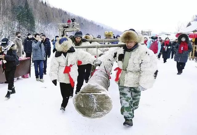 这里有冰雪娱乐场、东北民俗生活体验等特色项目。最值得体验的是木帮文化,老白山雪村是“木帮文化”的主要发源地。当地村民唱着嘹亮的木工号子,模仿冰天雪地里的伐木工人爬冰卧雪,用原始的方法抬着木头前进,游客可直观感受东北先民的原始生活场景。春兴古村