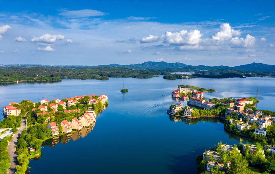 图/乡约荆楚"心泊山水间,梦栖大鑫湾"。大鑫湾仙人湖养生度假区,位于“药圣”李时珍故里——蕲春仙人湖畔。区内山中有水,水中有山,湖光山色,浑然一体,相映成趣。
