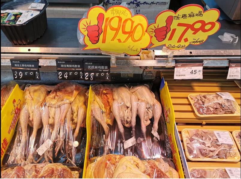 江西省发展和改革委员会9月14日发布的价格监测报表显示,饲料鸡、土鸡每500克10.41 元、23.50元,与2019年09月12日相比下降19.11%、13.54%。9月16日,记者探访南昌多家商超、农贸市场发现,鸡肉价格均有下跌,商超还打折促销,但市民购买热情仍然不高。
