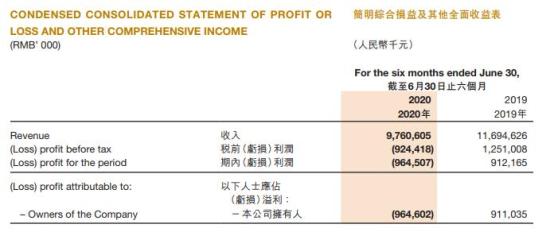 9月15日,海底捞发布2020中期报告显示,今年上半年,海底捞营业收入约97.6亿元,同比去年下降16.5%;期内亏损约9.6亿元,而去年同期是盈利约9.1亿元,同比下降205.7%。