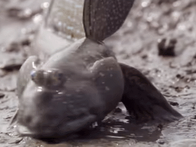 上山可能有点过,但是上树、穿越陆地对一些鱼来说,可谓小菜一碟。弹涂鱼这一类南方沿海常见鱼类就是爬树能手。弹涂鱼能以鳃、皮肤摄取空气中的氧进行呼吸,能短时间离开水,爬到海边红树等植物的枝干上捕捉昆虫。