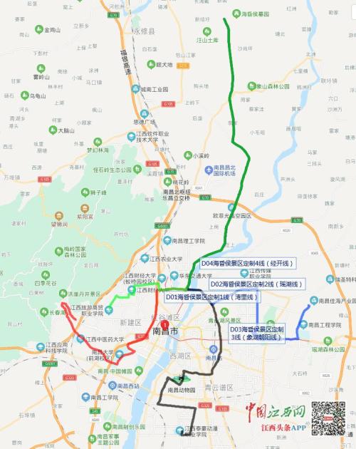南昌市区至海昏侯国遗址公园的四条公交线路: