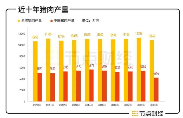 不光能吃,我们在产出上亦不落下风,常年位列全球猪肉产量排名榜首位,占到全球产量的一半左右。但因为太能吃了,在2010-2019年间的大部分时间里,自产的猪肉仍然不够我们吃。