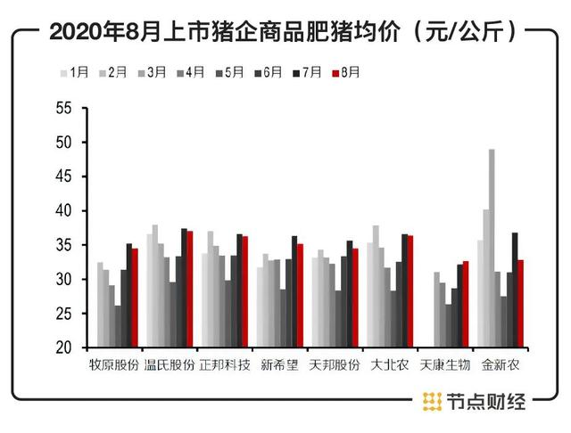从各上市公司的表现看,除了天康生物,8月份猪肉价格增速均为负数。