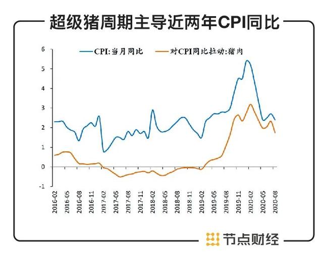 2019年,CPI同比由年中的2.7%快速升至年末的4.5%,其背后的主要推手就是猪。由于猪肉消费在CPI一篮子商品和服务中占比2.5-3.5%,权重较高,产生的影响也是巨大的。