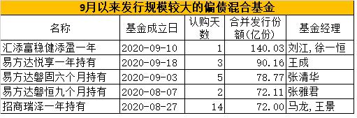 除了易方达旗下多只偏债混合基金,9月10日成立的汇添富稳健添盈一年混合基金更是一日卖超百亿,发行成绩更是赶超同期发行的多只权益基金。