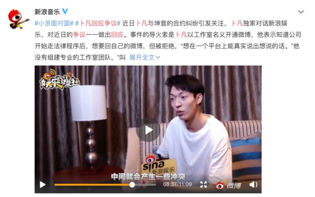 《偶像练习生》中走红的ONER成员卜凡,其个人工作室的成立则伴随着合约问题。2019年7月22日,卜凡宣布成立个人工作室,主张经纪约无效,而经纪公司坤音娱乐微博回应称"毫不知情"、"深感震惊"。卜凡表示:"走到这一步,是积累了很多矛盾没化解。"