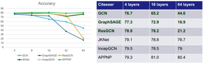 前面已经简单提到,深度对 GNN 的能力而言是非常重要的。这一点在深度神经网络(DNN)上也有体现——更深的网络往往具有强大的表达能力,可以说深度网络就是当前的人工智能发展热潮的最主要驱动力之一。