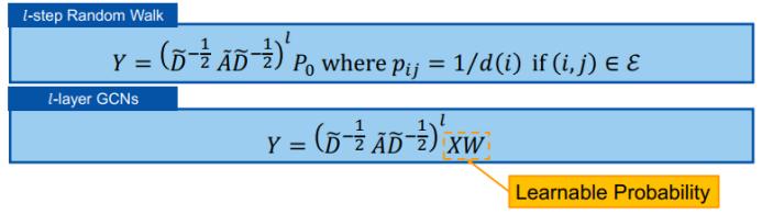 然后,如果我们用一组在节点特征上的可学习参数替换这个初始概率,它就能转换成一个线性的 L 层 GCN。